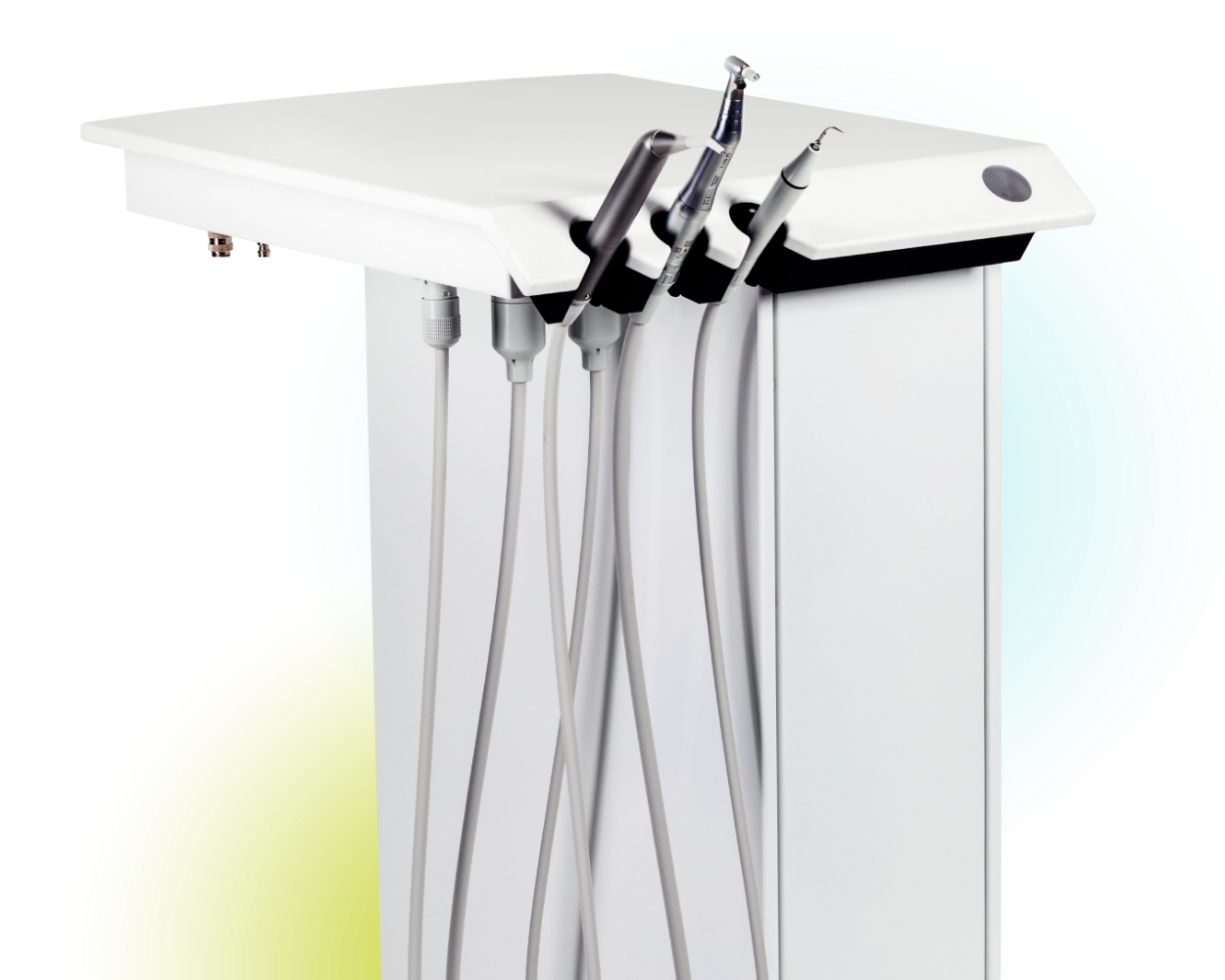 Dankzij de geïntegreerde compressor en watertanks kan de behandelunit eenvoudig worden verplaatst tussen behandelkamers en is deze zonder enige ombouw geschikt voor zowel links- als rechtshandige gebruikers.